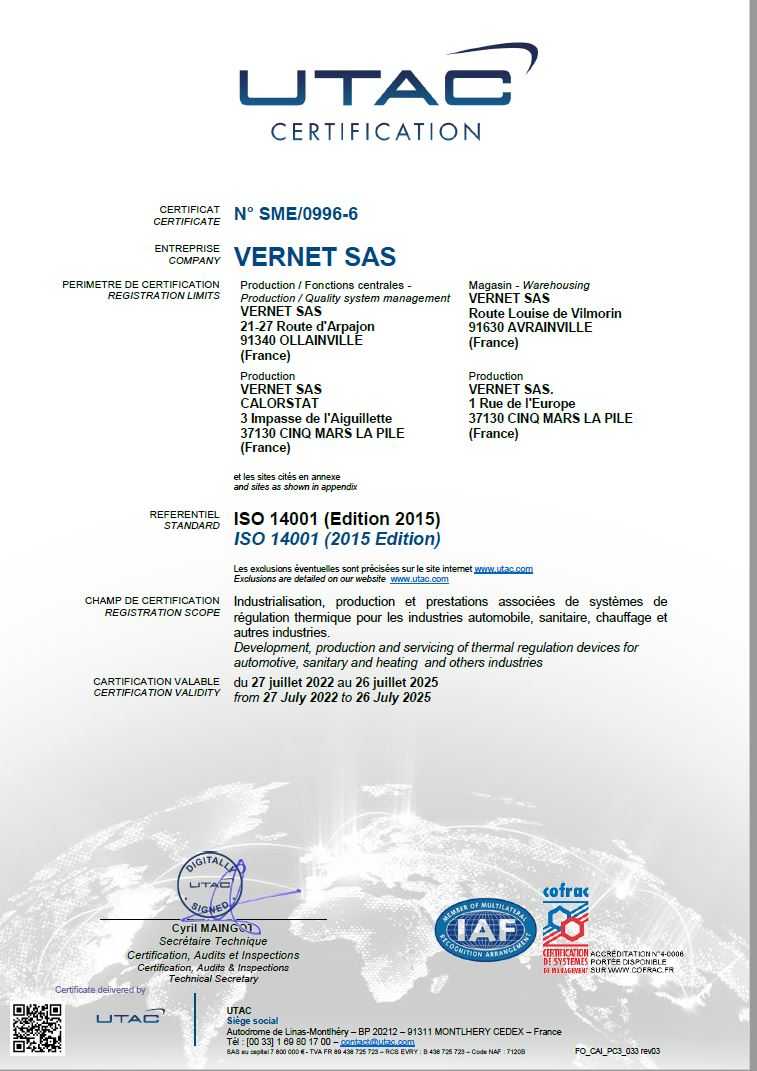 Vernet France ISO 14001