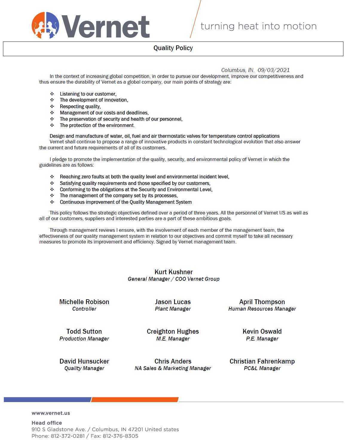 Vernet美国质量手册