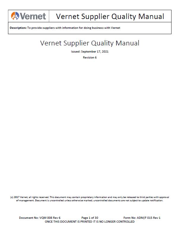 Vernet US supplier quality manual