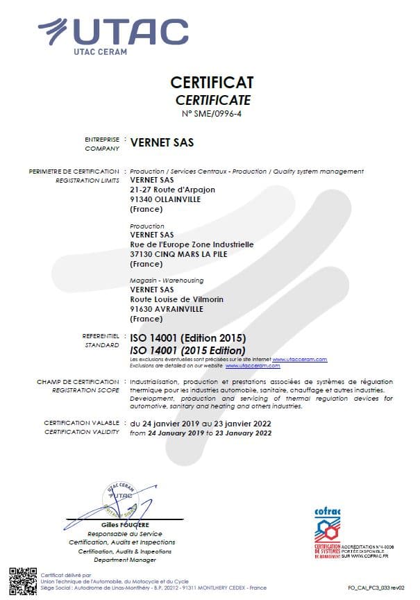 Vernet France ISO 14001