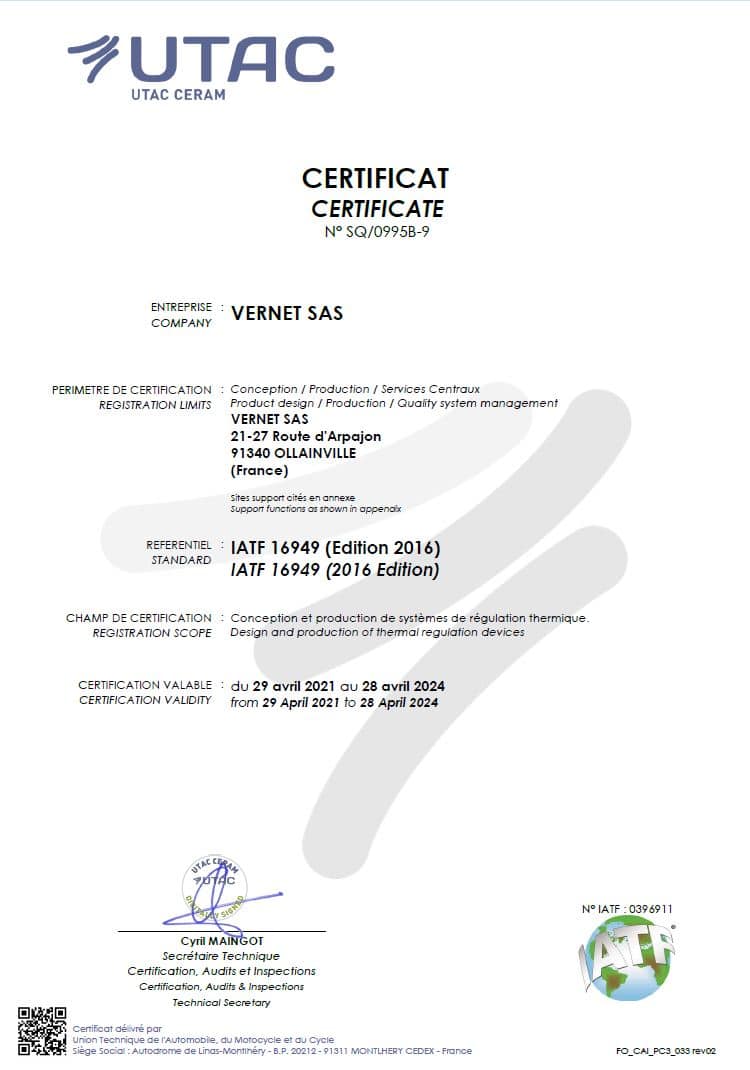 Vernet France IATF 16949