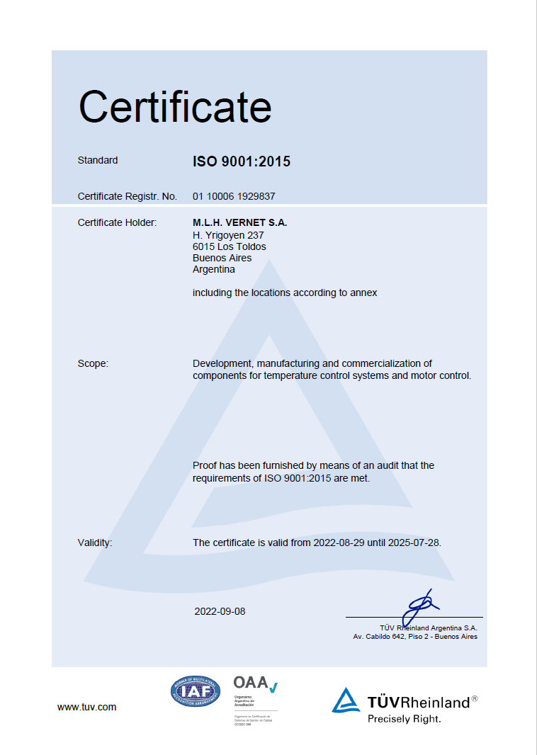 Vernet Argentina - ISO 9001