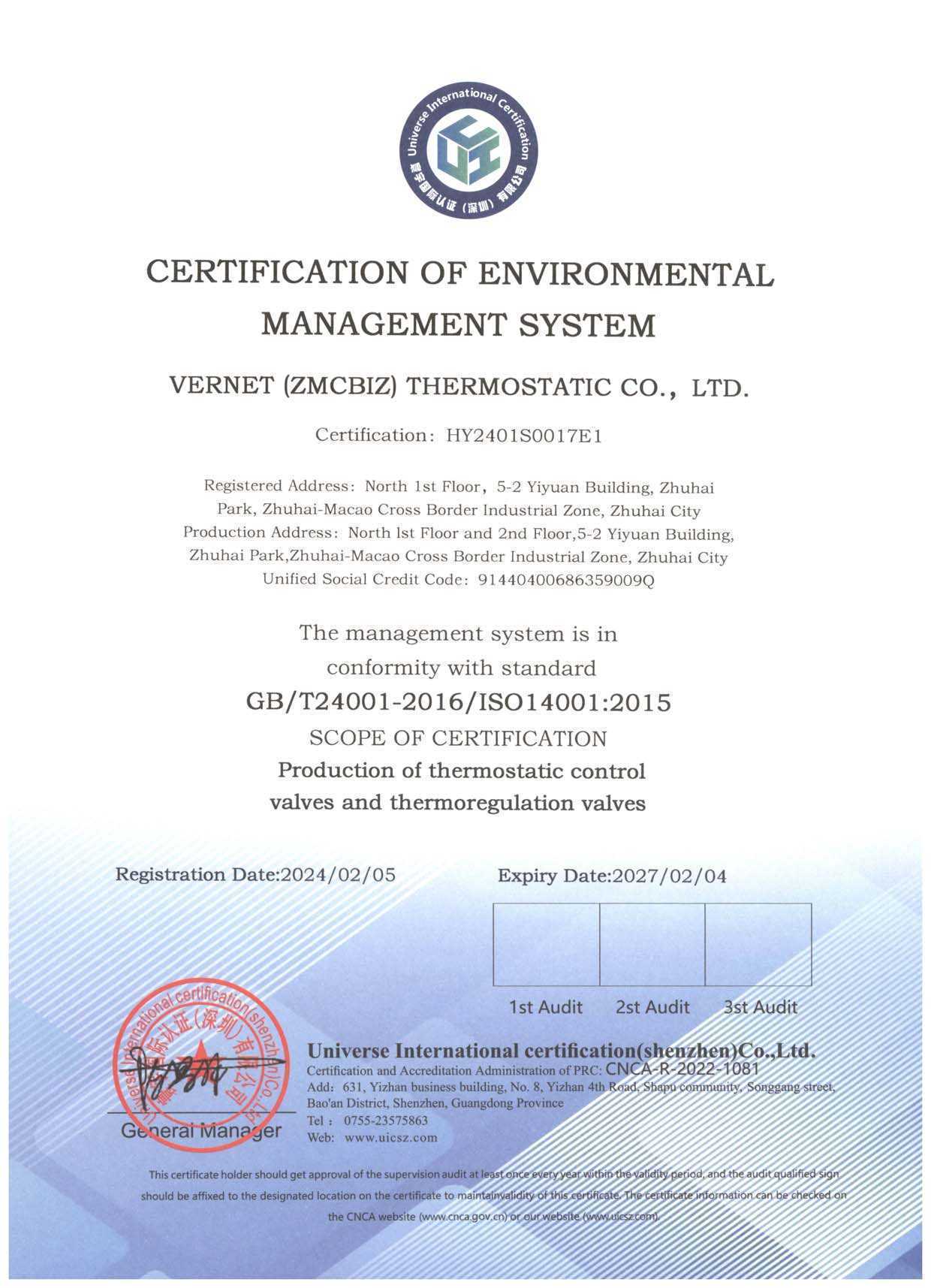 Vernet China – ISO14001:2015