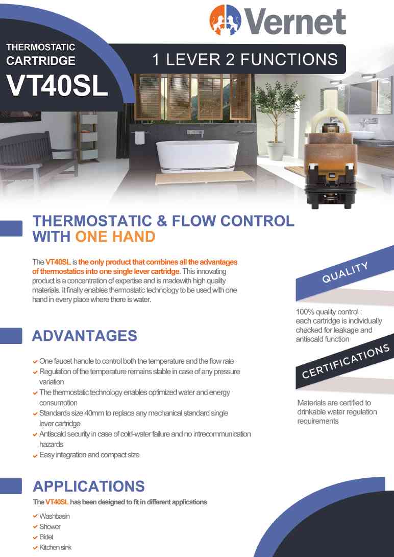 The VT40SL is the only product that combines all the advantages of thermostatics into one single lever cartridge.